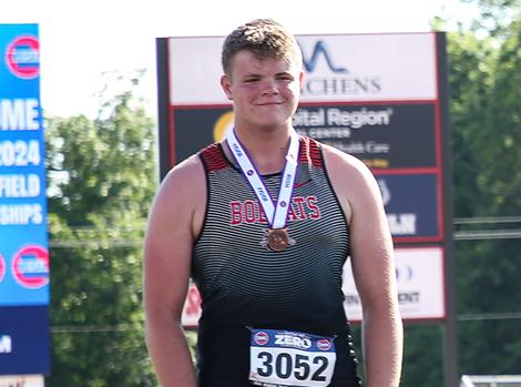 Bowling Green's Aiden Grote earned a bronze medal at State with a PR of 176-5 (53.77m) putting him second among returners.